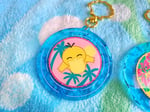Pick between duck and pink hippo designs! Features different artwork on the back and a fun ripple-textured acrylic!